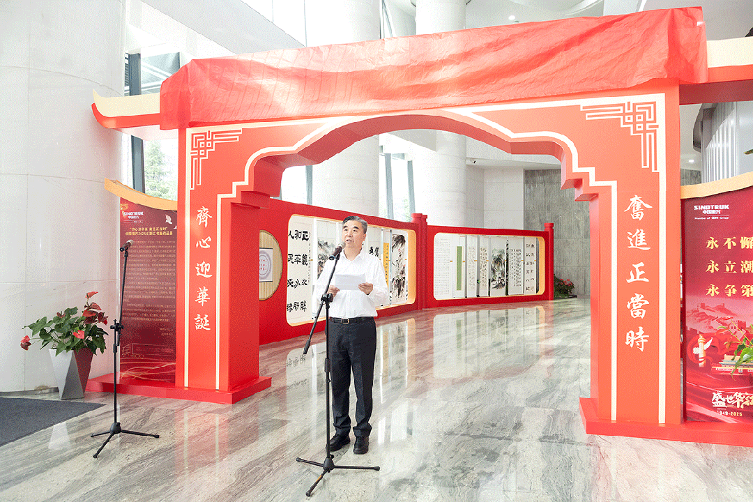 ??金秋九月,丹桂飄香。為隆重紀(jì)念中國人民抗日戰(zhàn)爭暨世界反法西斯戰(zhàn)爭勝利80周年,熱烈慶祝中華人民共和國成立76周年,9月24日,“齊心迎華誕奮進(jìn)正當(dāng)時”中國重汽集團2025年職工書畫展在科技大廈開展。山東重工集團黨委副書記、董事、工會主席葉建軍,中國重汽集團黨委書記、董事長劉正濤出席活動并共同為書畫展揭幕,中國重汽集團黨委副書記、董事、工會主席蔣朋朋主持開幕式。