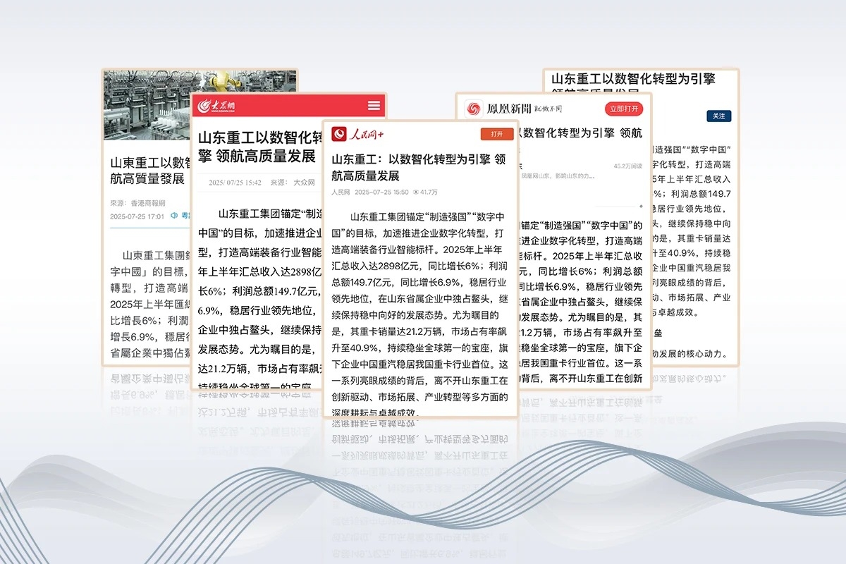 ??山東重工集團錨定“制造強國”“數(shù)字中國”的目標(biāo),加速推進企業(yè)數(shù)字化轉(zhuǎn)型,打造高端裝備行業(yè)智能標(biāo)桿。2025年上半年匯總收入達2898億元,同比增長6%;利潤總額149.7億元,同比增長6.9%,穩(wěn)居行業(yè)領(lǐng)先地位,在山東省屬企業(yè)中獨占鰲頭,繼續(xù)保持穩(wěn)中向好的發(fā)展態(tài)勢。尤為矚目的是,其重卡銷量達21.2萬輛,市場占有率飆升至40.9%,持續(xù)穩(wěn)坐全球第一的寶座,旗下企業(yè)中國重汽穩(wěn)居我國重卡行業(yè)首位。這一系列亮眼成績的背后,離不開山東重工在創(chuàng)新驅(qū)動、市場拓展、產(chǎn)業(yè)轉(zhuǎn)型等多方面的深度耕耘與卓越成效。