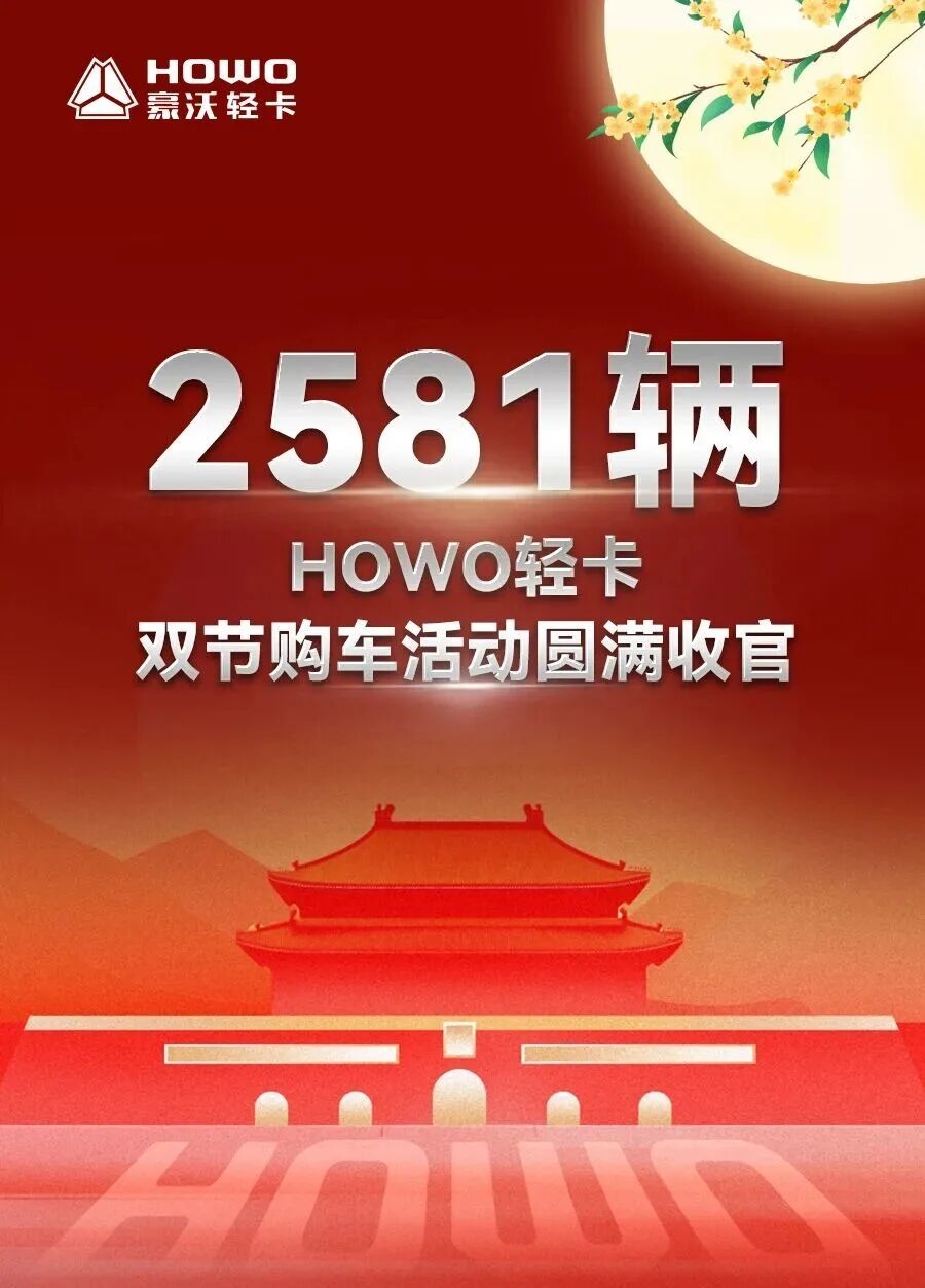 ??隨著中國(guó)重汽HOWO輕卡“雙節(jié)同慶,雙倍省錢,雙重創(chuàng)富”購(gòu)車活動(dòng)圓滿結(jié)束,一份矚目的成績(jī)單正式出爐。